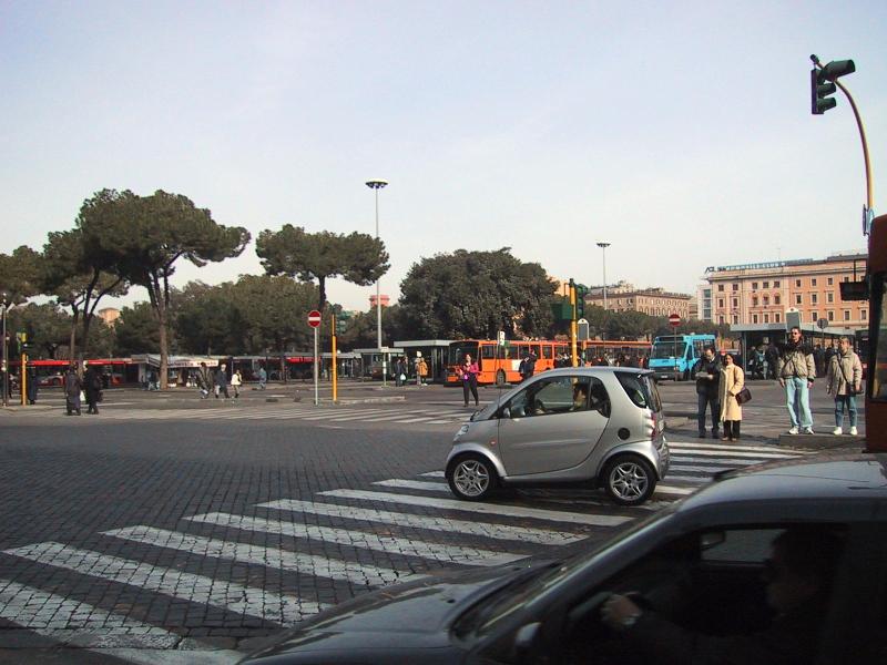 | Teri at Termini Station, in background, with silver Smart(tm) in