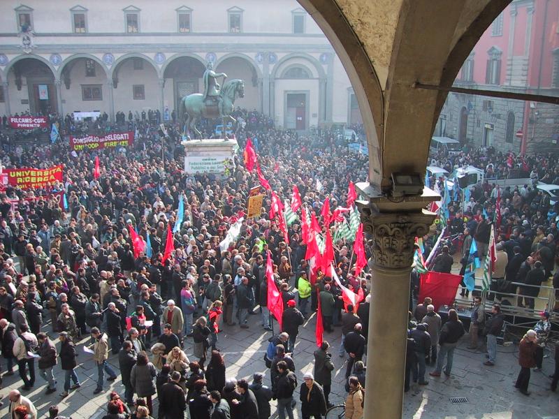 Communist ralley in Piazza Della Annunziata, outside hotel in