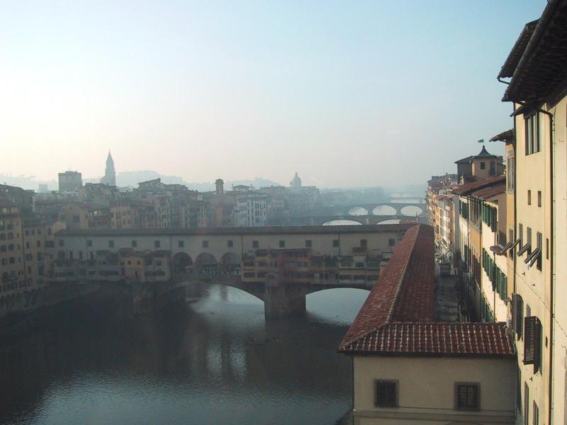 Ponte Vecchio across River Arno in Florence (from Uffizi). |