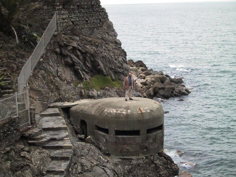 Randy on WW II pillbox (Tortuga) on coast of Monterosso. |