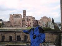 Randy inside the Colosseo with the Forum in background. |