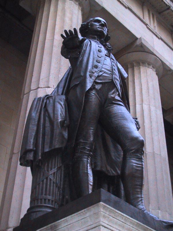 "Talk to the Hand" George Washington in front of Federal Building |