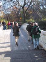 | Gang Crossing Bow Bridge in Central Park |