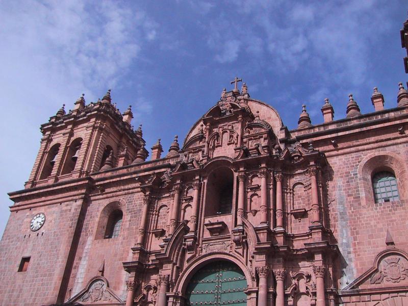 | Exterior of Catholic church built on top of the Inca temple to the sun. | Jesuit church of La Campania that competed with the Cathedral in main square of Cuzco. | The Cathedral in main square of Cuzco. | The Cathedral in main square of Cuzco. |