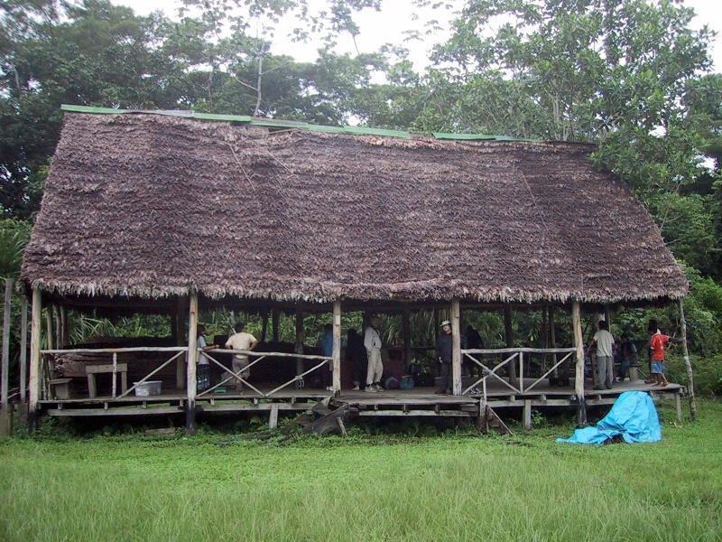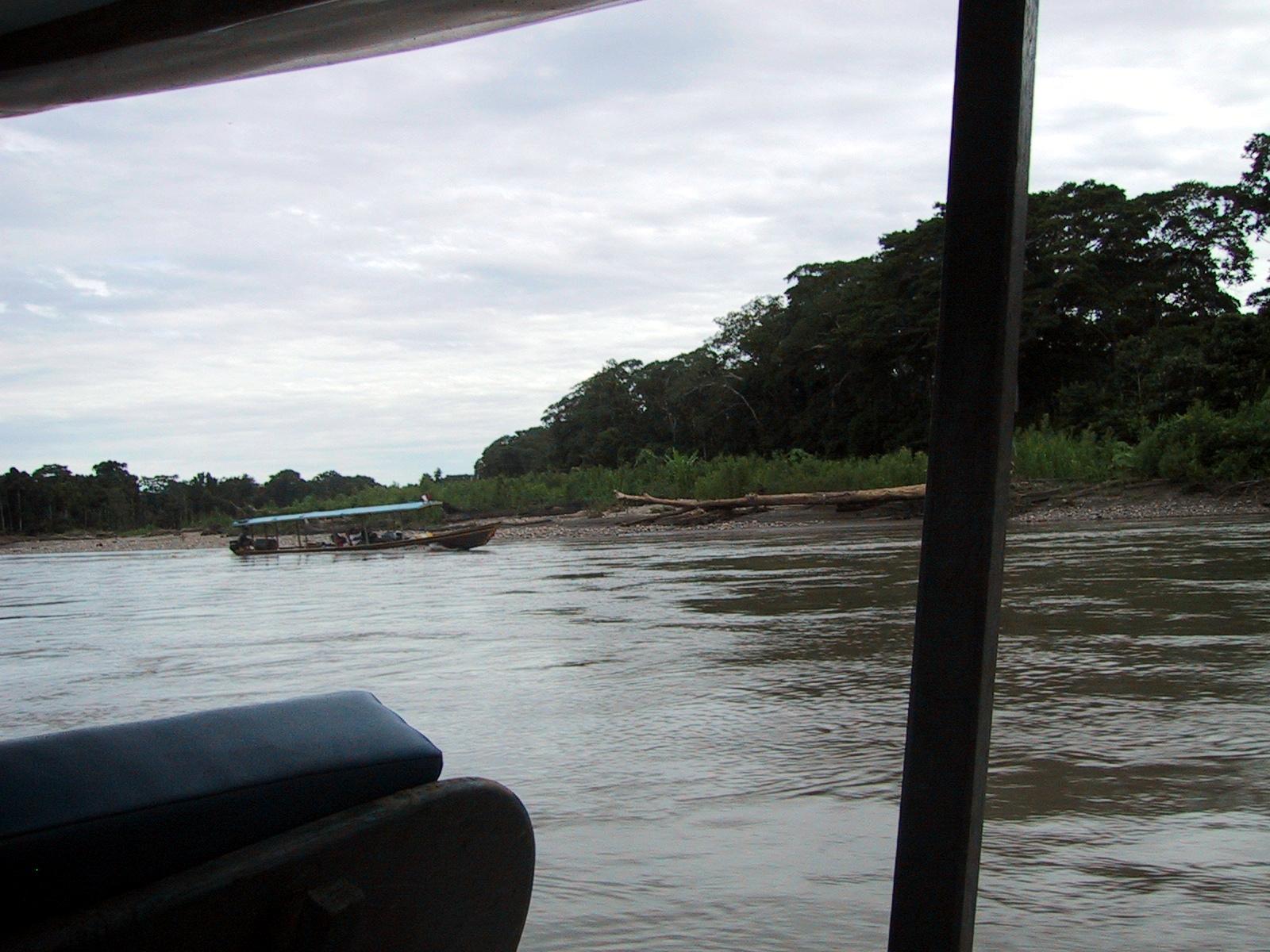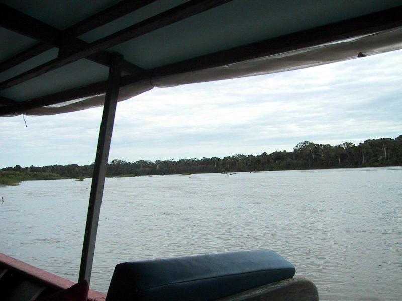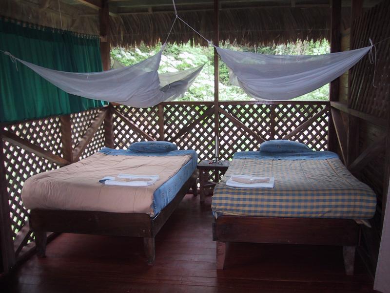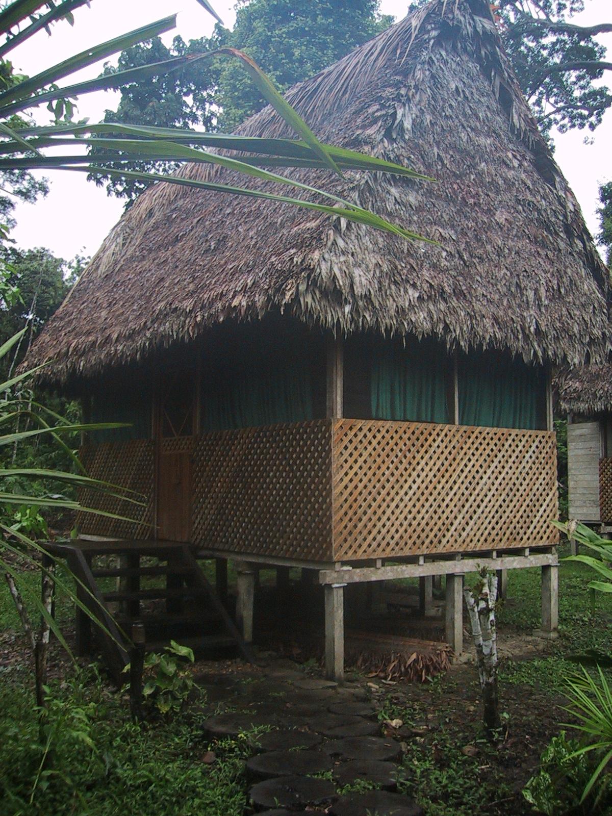 | River trip on motorized canoe from Boca Manu to our camp. | River trip on motorized canoe from Boca Manu to our camp. | Our bungalow at the camp in Manu. | Our bungalow at the camp in Manu. |