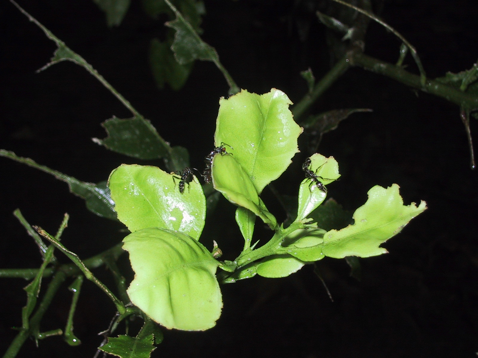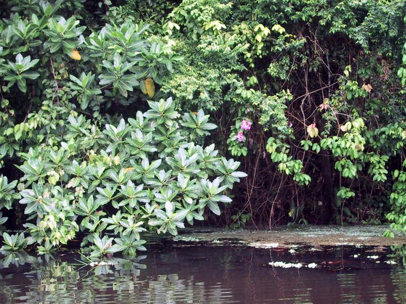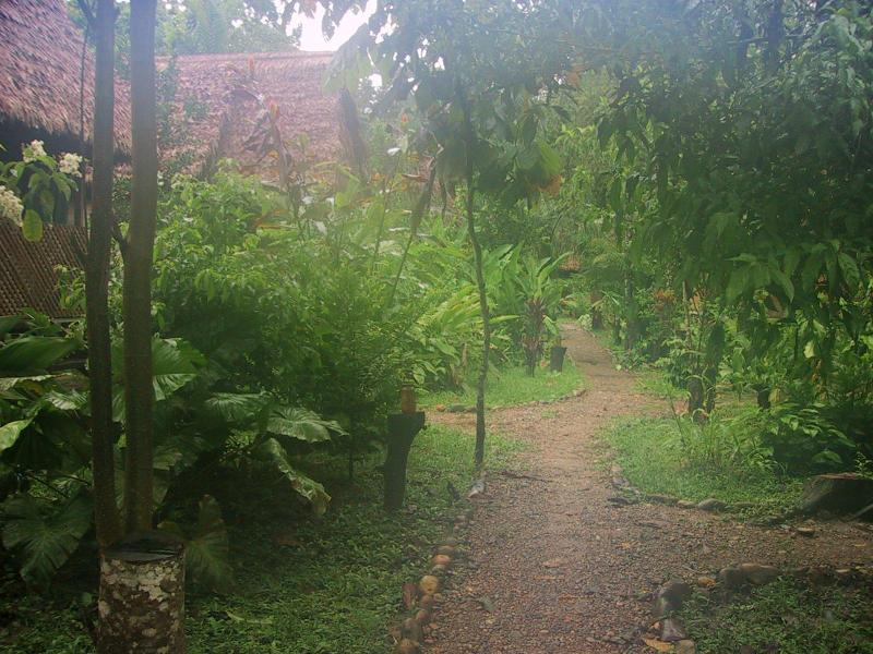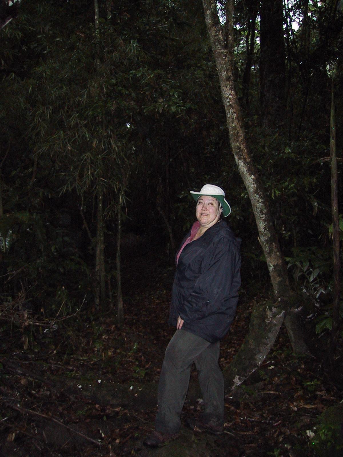 | Near our bungalow at camp (the camera lense is fogging over in the humidity.) | Ants on leaves in rain forest. | Teri in the rainforest before a hike to find river otters (we didn't see any.) | Randy in the rainforest before a hike to find river otters. |