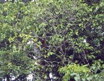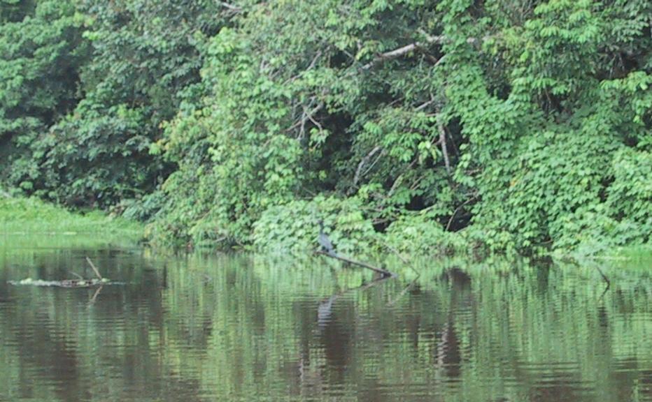 | One of the two Jose's on catamaran on the oxbow lake. | The shoreline of the oxbow lake. | Howler monkeys in tree (real hard to see, take my word) | Howler monkeys in tree (real hard to see, take my word) |