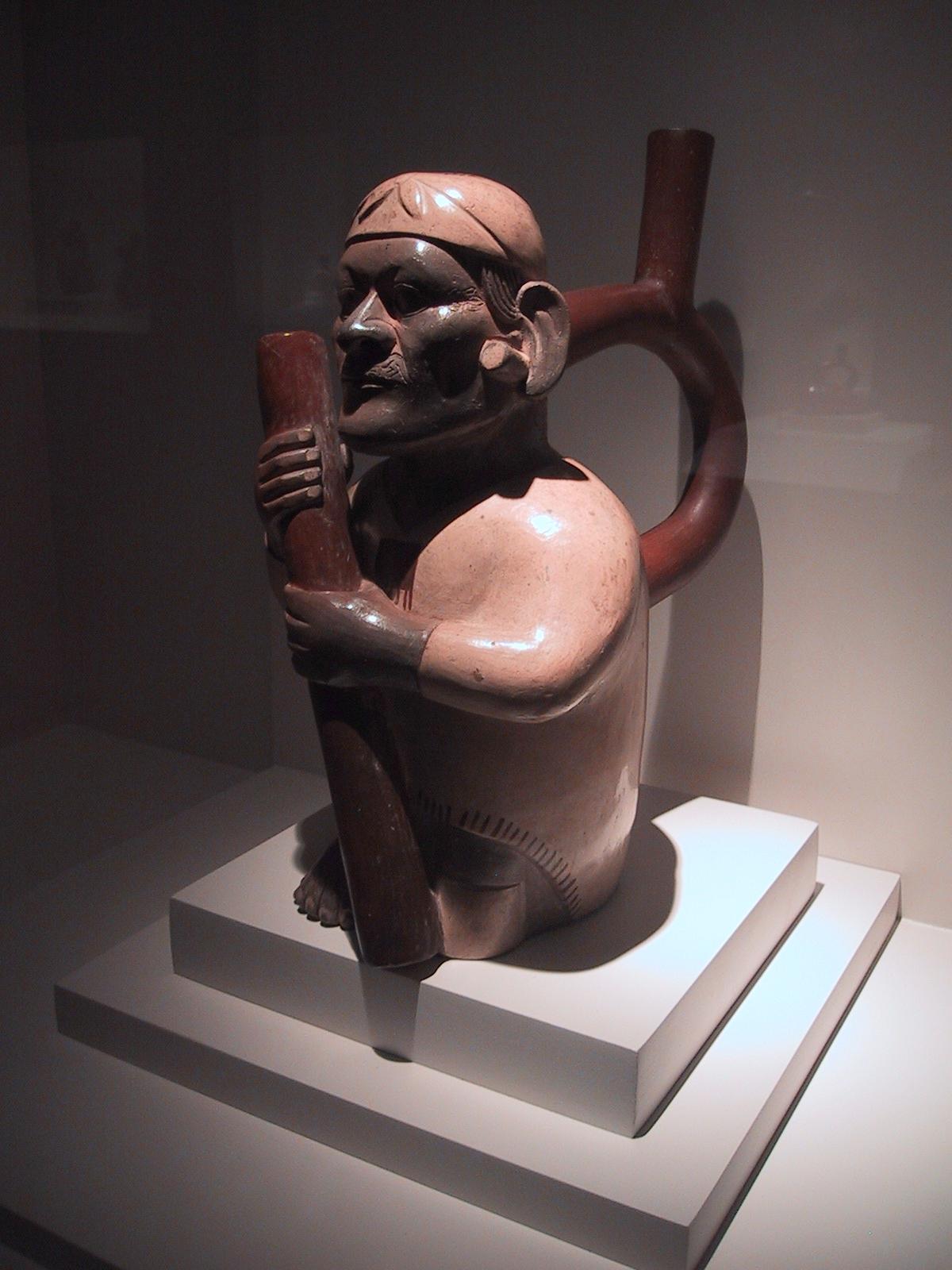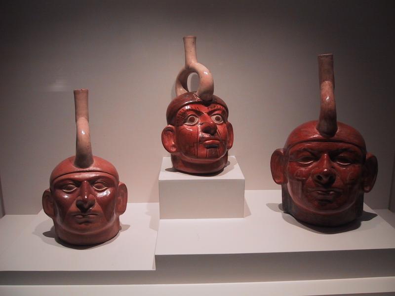 | Moche (pre-Inca ~100AD-700AD) pottery from the Museum of Pre-Columbian Art in Cuzco. | Moche (pre-Inca ~100AD-700AD) pottery from the Museum of Pre-Columbian Art in Cuzco. | Moche (pre-Inca ~100AD-700AD) pottery from the Museum of Pre-Columbian Art in Cuzco. | Moche (pre-Inca ~100AD-700AD) coral necklace from the Museum of Pre-Columbian Art in Cuzco. |