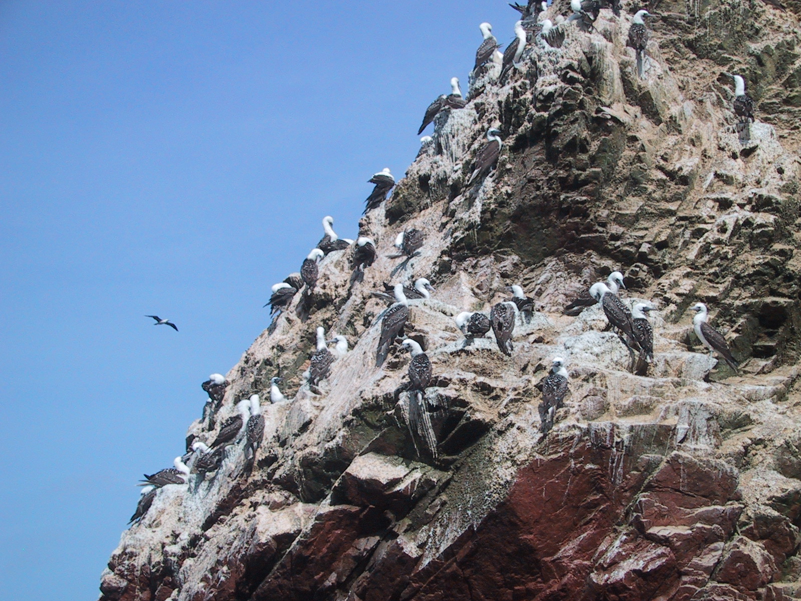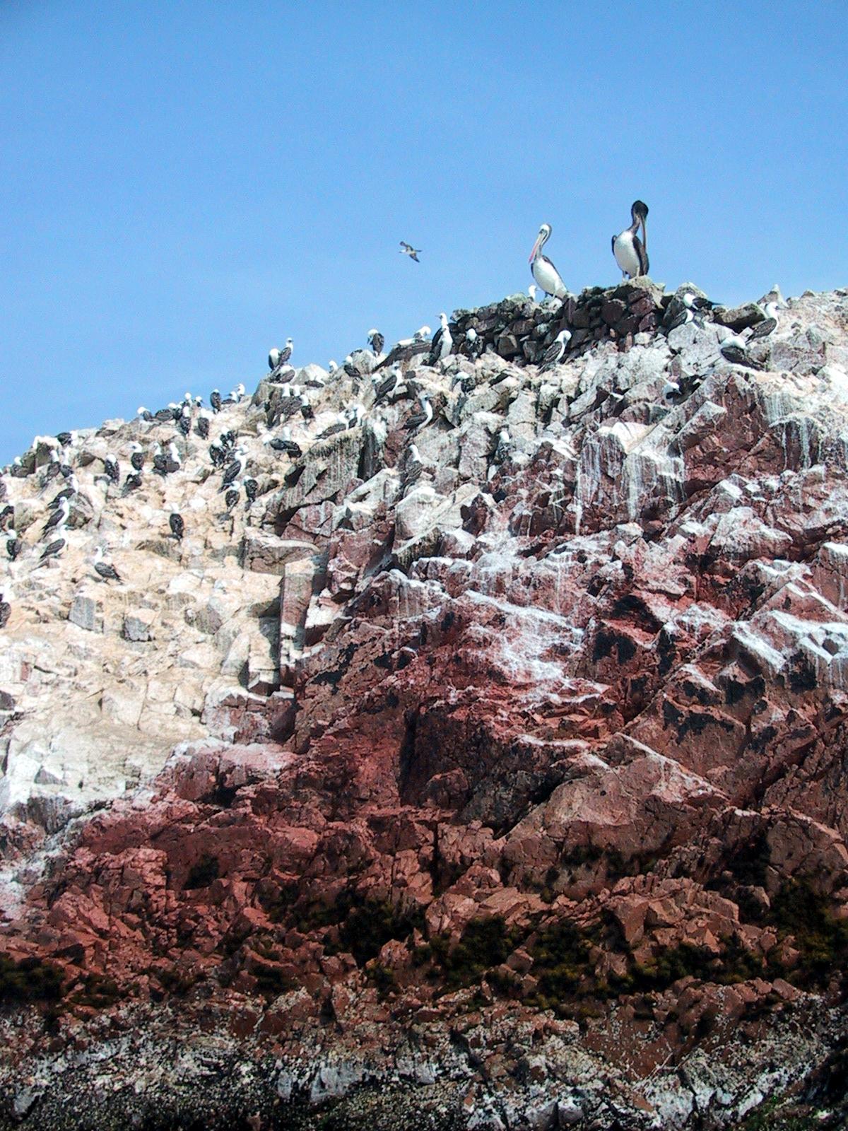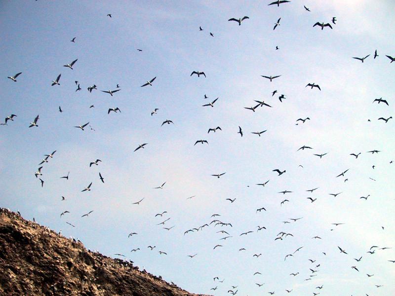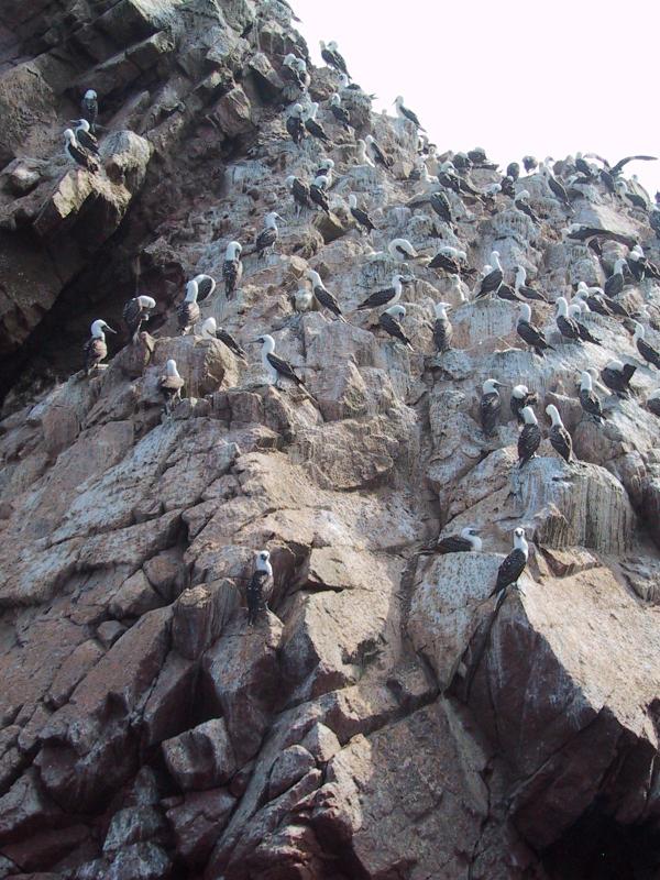 | Peruvian Boobies. | Peruvian Boobies. | Boobies (left), Cormorants (center). and Humbolt Penguins (right of center). | Humbolt Penguins (foreground), Boobies (background). |