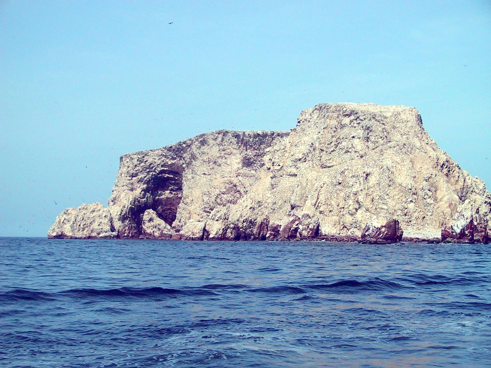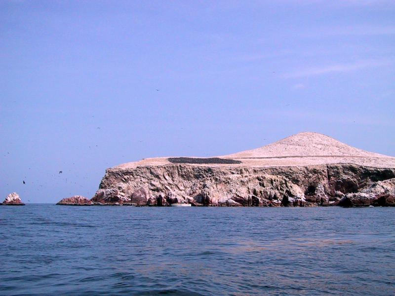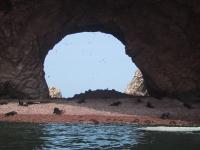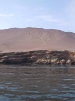 | Pepe the condor at the Ica airport. | The Ballestra islands near Pisca, Peru. | Rock art, viewable from sea, in Ballestra islands. | The Ballestra islands near Pisca, Peru. |