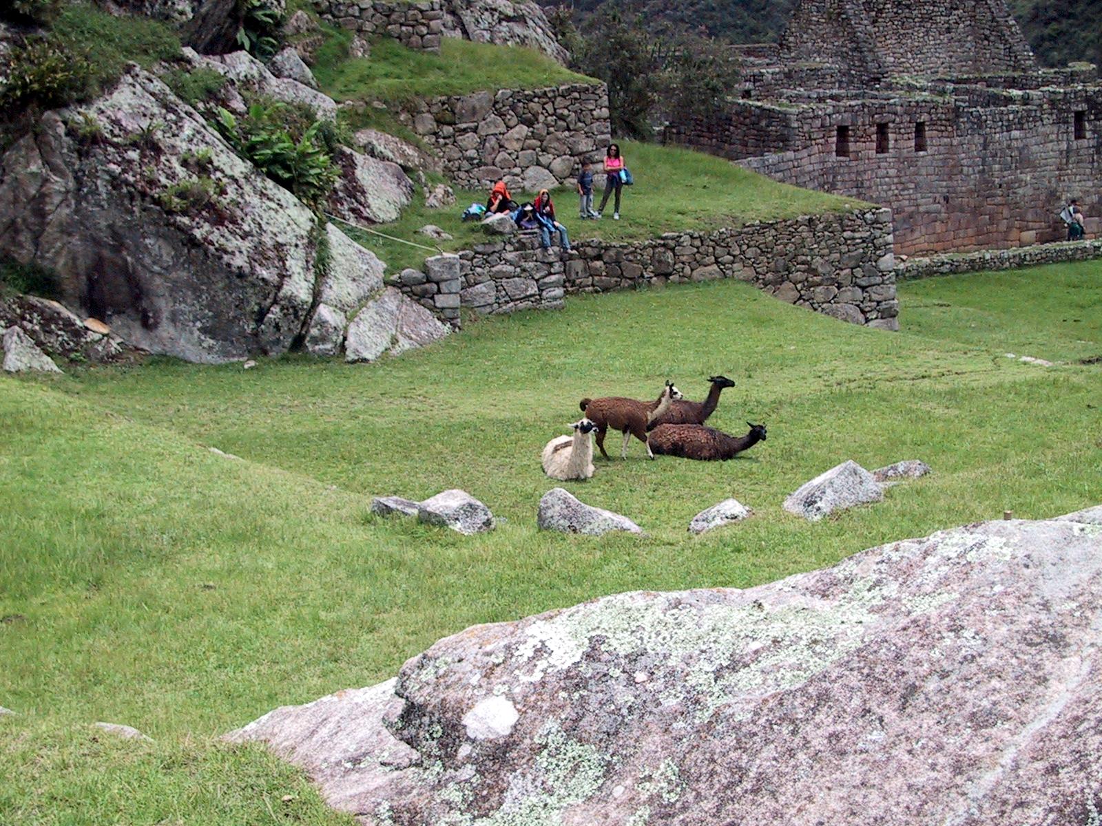 | Machu Picchu. | Machu Picchu. | Machu Picchu. | Llamas in the main square of Machu Picchu. |