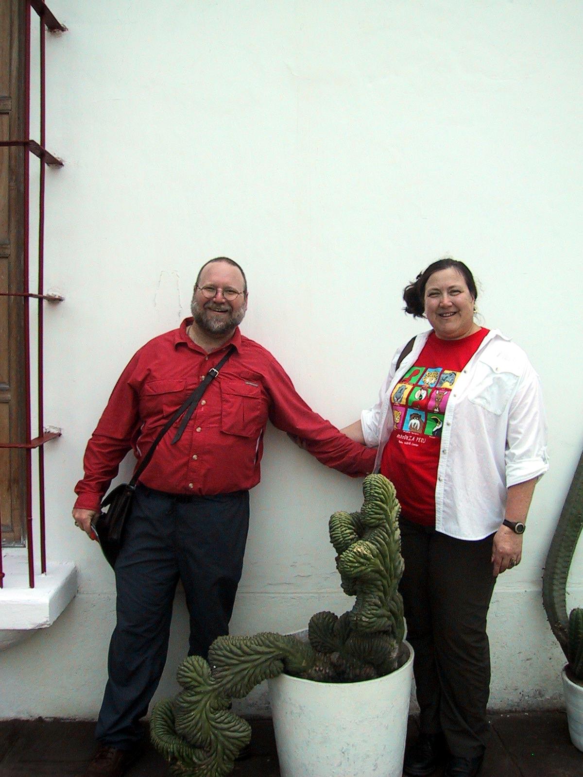 | Birds, thick on an island. | A sleepy sea lion. | Randy and Teri with weird looking plant in Lima, Peru. |