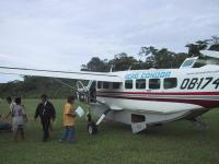 | View from our plane landing at Manu Nature Reserve. | Coming in for a landing on the airstrip at Boca Manu. | Airstrip at Boca Manu. | Injured Razor-billed Curassow at airstrip at Boca Manu. |